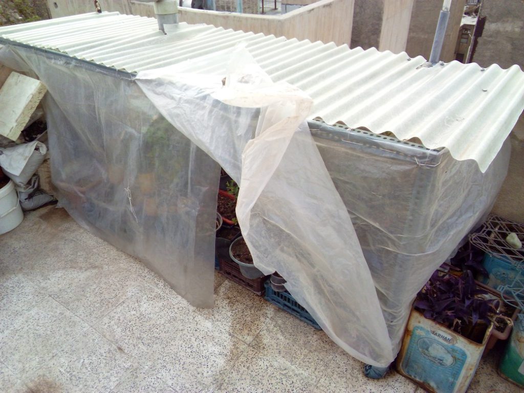 تا اینجا یک نمونه ی ساده رو دیدید؛ از این ساده تر هم میشه، با انتخاب گیاهان مقاوم و قرار دادن در سایه یا آفتاب حتی نیاز به سایه بان و دیوار نایلونی هم نیست.